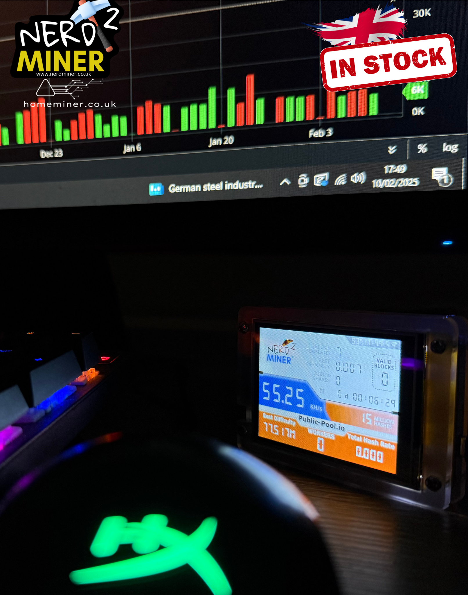 Nerd Miner v2 HomeMiner – OG Bare Bones Solo Bitcoin Miner UK STOCK
