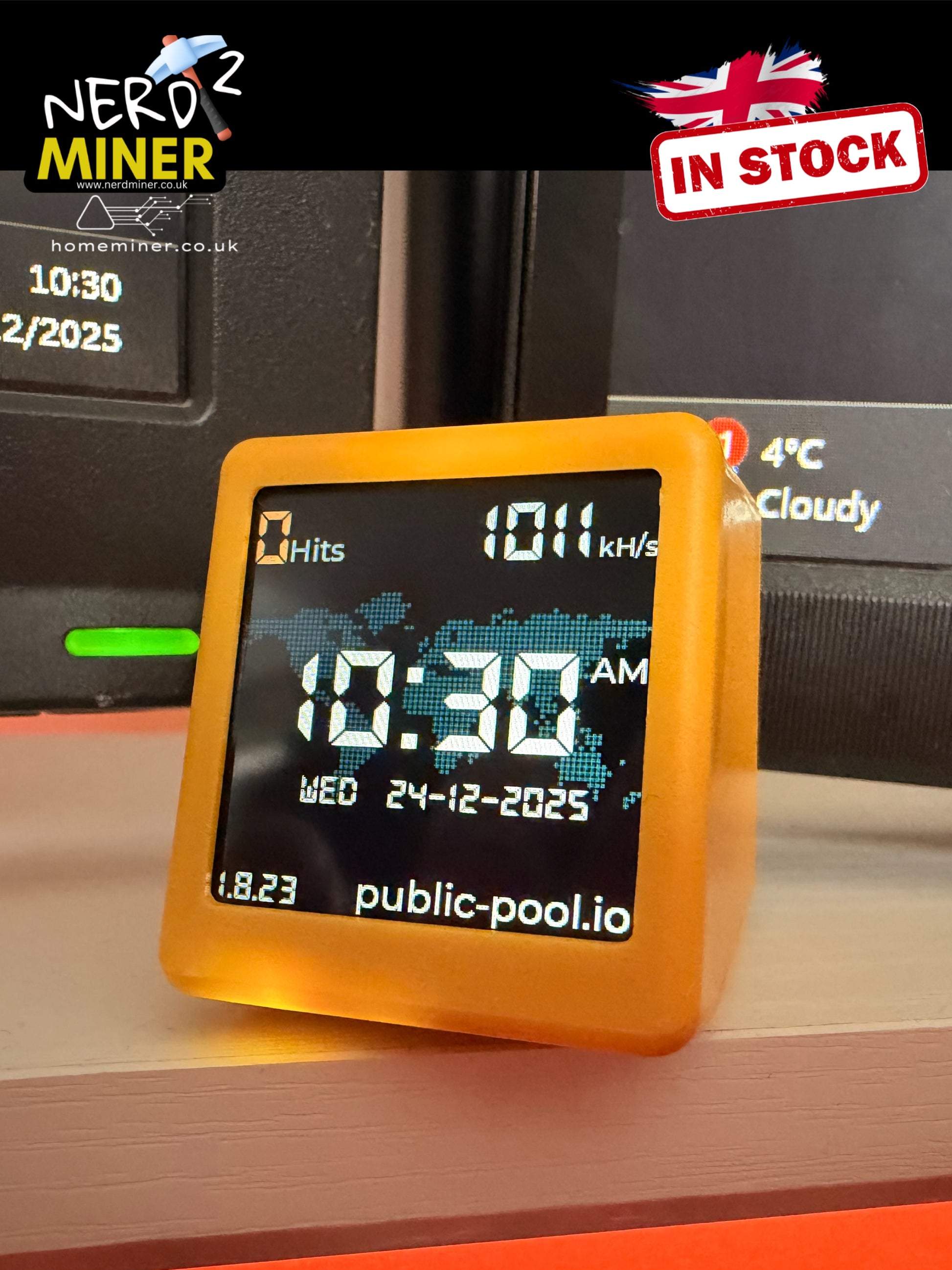 Hashrate: 1050–1060 kH/s — up to 2000% more chance in the Bitcoin lottery than classic Nerdminer units (55 kH/s)